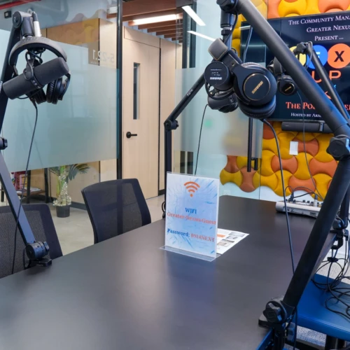 You can start your own podcast show here at Greater Nexus! Our Podcast Studio will give you all of the tools needed to successfully launch your own podcast! The hourly rate includes 2 mics, 2 headsets plus an audio mixer. Additional mics/headsets available for $5 per item.