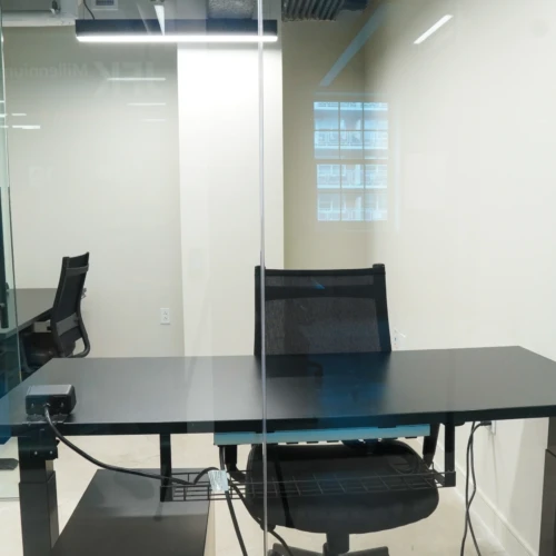 Our 90 square foot Double Private Office Suite includes two (2) desks and two (2) chairs.